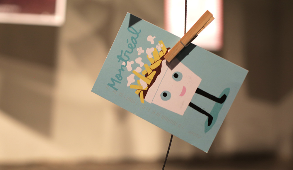 Une corde à linge a aussi été installée pour recréer l’esprit des ruelles de Montréal, présentant des objets textiles, des affiches, des cartes souvenirs avec de jolis messages. C’est un moyen original et idéal pour présenter aux visiteurs des créations de graphistes du Québec.