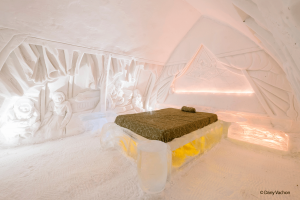 L’Hôtel de Glace est réputé mondialement pour sa structure unique faite entièrement de neige et de glace. L’hôtel est conçu et réalisé à l’interne par leur propre équipe d’une cinquantaine d’artisans talentueux , dont des sculpteurs et des aides-sculpteurs qui travaillent durant six semaines. Pour parvenir à une structure de cette ampleur, 500 tonnes et glaces et 30 000 tonnes de neiges sont utilisées! À la porte principale, on vous accueille avec un immense mur où les briques faites de glace sont parfaitement translucides. Afin d’obtenir la forme parfaite désirée, elles sont taillées grâce à une scie électrique lorsque la structure est montée. L’Hôtel de Glace offre des suites thématiques originales où la neige est façonnée en immenses motifs hivernaux du sol au plafond. Ces fresques sont de véritables œuvres d’art et les lits en glace taillée sont dignes de la reine des glaces! Question de vous réchauffer un peu, une visite dans le bar de glace vous transportera dans un monde fascinant. Chaleureux, vous vous sentirez comme dans un palais devant le foyer encerclé de poutres en glace translucide où les jeux de lumière sont hallucinants. Tout ça, sans oublier la fameuse Grande Glissage qui semble tout droit sortie du film L’ère de glace!