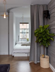 Nul besoin de vivre dans un petit appartement délabré, vieux et où les fenêtres laissent entrer l’air froid. Graham Hill, fondateur du blog écologique Treehugger.com et LifeEdited, en est la preuve vivante. Expert pour ce qui est de vivre grand dans de petits espaces, cet entrepreneur minimaliste vit en couple et avec deux chiens dans un appartement de 350 pieds carrés à New York. Évidemment, les meubles doivent être soigneusement choisis et sont pour la plupart ergonomiques, rétractables et offrent beaucoup de rangement. Le style contemporain et épuré donne l’illusion d’un espace plus grand. Sa conférence TED Less stuff, more Hapiness a été visionnée plus de 3 millions de fois! Comme quoi, il est possible de vivre dans un joli petit espace design qui s’adapte à notre mode de vie.