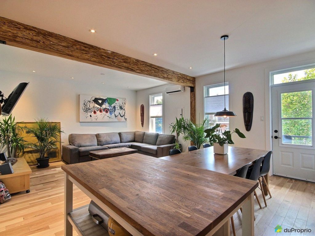 Cette charmante propriété est sans doute une des meilleures offres qu’on a pu voir récemment, vu son esthétisme et son prix. Pour 325 000$, ce haut de duplex au plancher et poutre de bois est disponible dans un quartier hyper tranquille et familial. La lumière naturelle est bien présente et on adore le contraste du mur noir de la cuisine avec le reste de la pièce à aire ouverte pratiquement blanc.