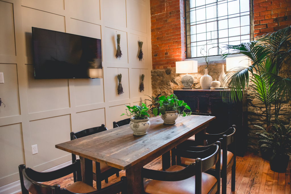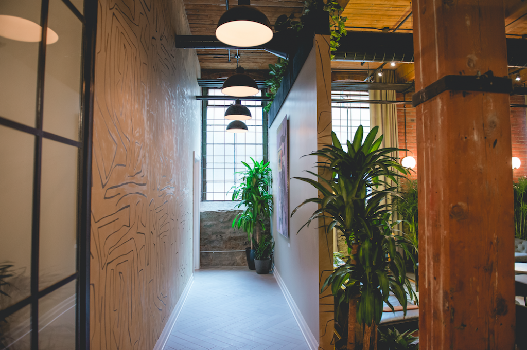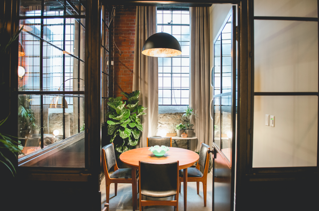 Prenant place dans une ancienne manufacture de 4 200 pieds carrés, la talentueuse designer montréalaise Amlyne Phillips de la Chambre Design (Kozu, Madame Bovary, Kampai Garden) est parvenue à dessiner un espace à la fois moderne et haut de gamme tout en demeurant hyper chaleureux : le Parloir-caves privées.