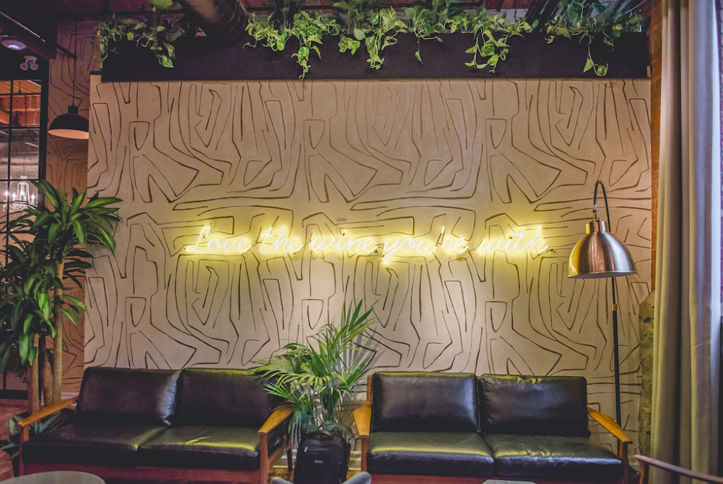 On adore l’univers d’Amlyne Phillips, que ce soit par les nombreuses plantes souvent présentent dans ses créations, ou les meubles de choix toujours bien choisis et qui apportent cette fois-ci une touche à la fois chic et vintage à l’endroit. Sans oublier le joli néon avec la phrase « Love the wine you’re with », amusant et joli à souhait.