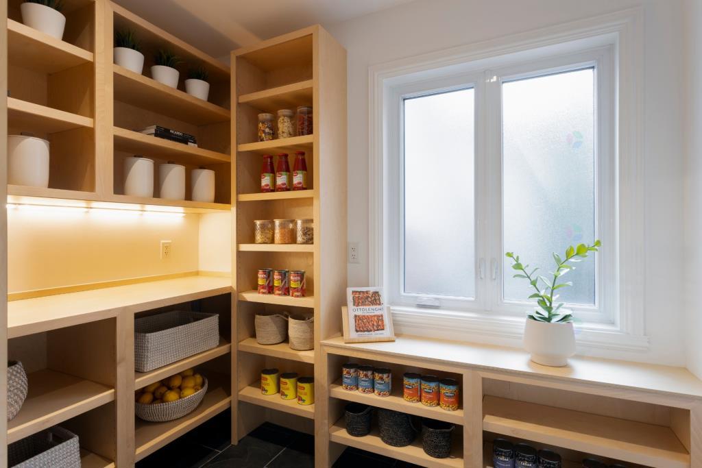 La cuisine constitue sans doute le cœur de cette demeure. Spacieuse et pensée avec goût, elle saura séduire les passionnés de gastronomie comme ceux qui aiment simplement partager un café dans une ambiance accueillante. Le grand îlot central devient rapidement le point de rencontre, que ce soit pour cuisiner ensemble, discuter ou prendre un repas informel. Les surfaces de travail abondent, les espaces de rangement sont nombreux et le garde-manger de style walk-in complète parfaitement cet espace fonctionnel et esthétique. Tout y est à portée de main, ce qui rend la préparation des repas à la fois pratique et agréable.