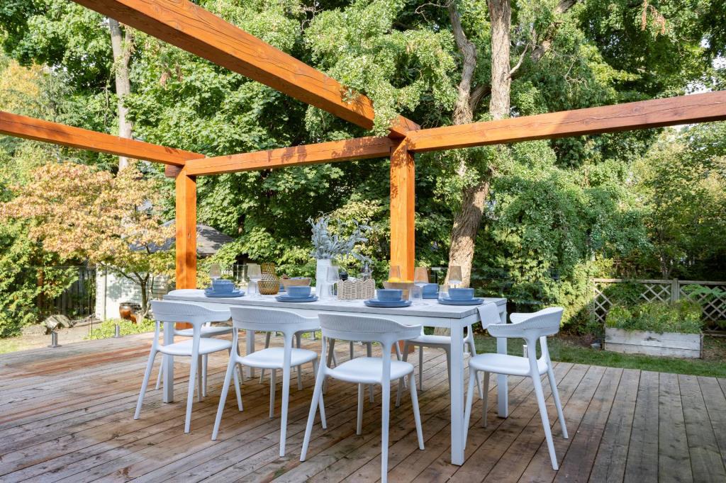 La cuisine s’ouvre directement sur une terrasse, permettant de prolonger les moments de convivialité à l’extérieur. Entourée de baies vitrées, cette terrasse offre un cadre sophistiqué et confortable, parfait pour recevoir en toute saison.