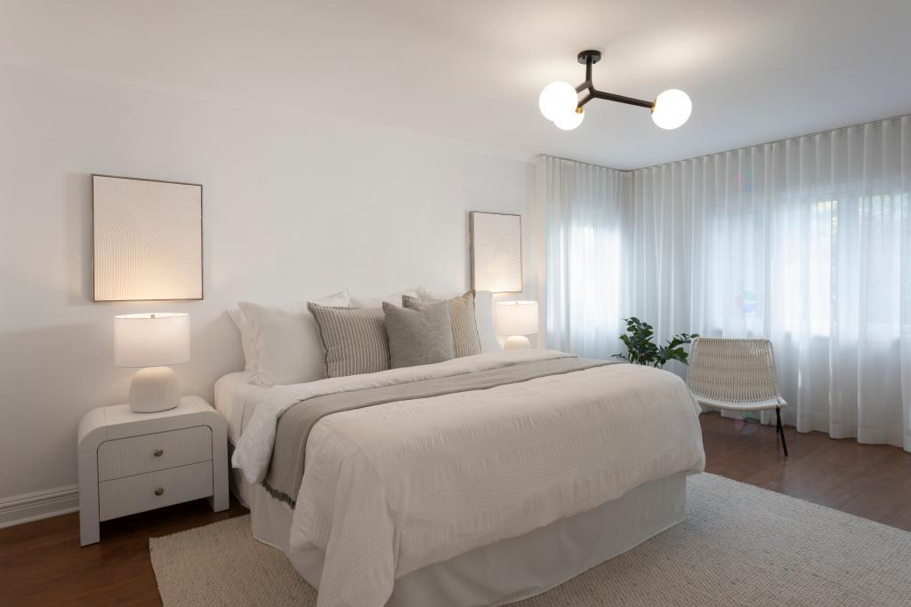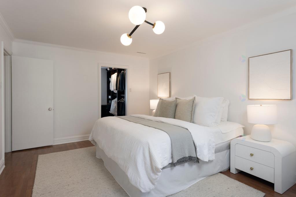 À l’étage, la chambre principale se distingue par sa taille généreuse et son atmosphère de sérénité. Véritable espace de repos, elle inclut un grand walk-in, permettant de garder vêtements et accessoires parfaitement organisés.
