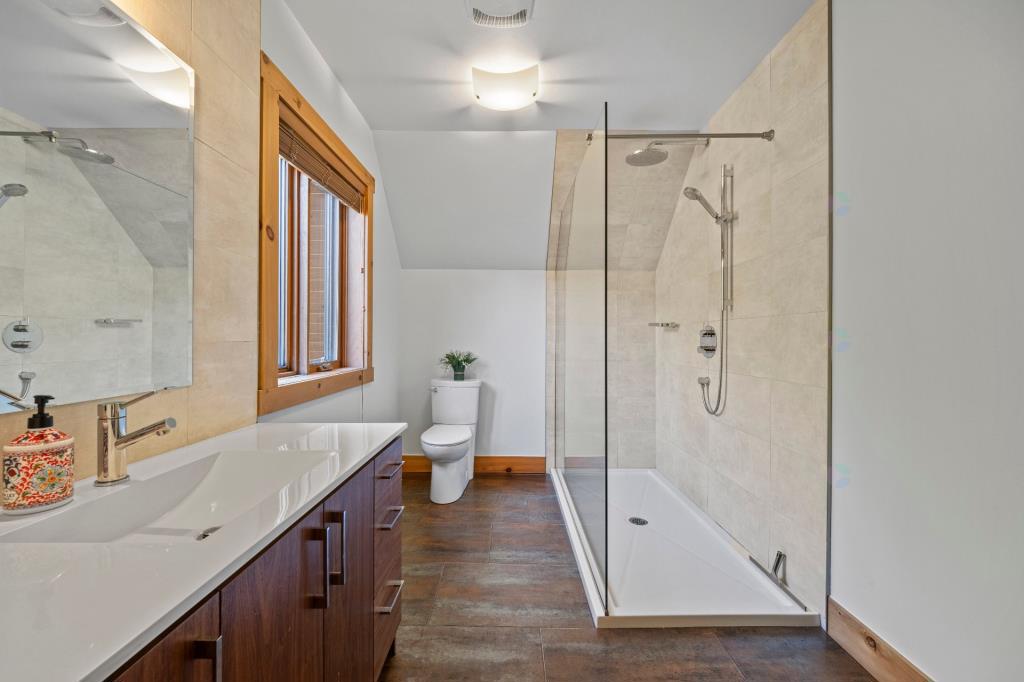 Les quatre chambres permettent d’accueillir famille et amis dans le plus grand confort. Chacune d’elles est pensée pour le repos et l’intimité, avec une attention portée aux détails et à l’ergonomie. Trois salles de bains complètes ainsi qu’une salle d’eau assurent une circulation fluide et évitent les matins encombrés, ce qui est toujours un luxe, particulièrement lorsque la maison est remplie de visiteurs.