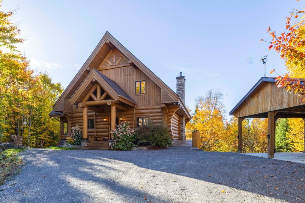 Dès l’instant où l’on aperçoit cette maison en bois rond signée Harkins, située dans le prestigieux domaine Nostalgia à Val-des-Lacs, on comprend que l’on se trouve devant bien plus qu’une simple propriété. Elle dégage une prestance naturelle, une élégance rustique qui évoque à la fois le raffinement et le confort, dans un environnement où le calme règne en maître. Dès le seuil franchi, c’est un univers chaleureux qui s’ouvre, imprégné de l’odeur du bois, de la lumière naturelle filtrant à travers les grandes fenêtres, et du sentiment profond d’être « chez soi », même si ce n’est que la première visite.