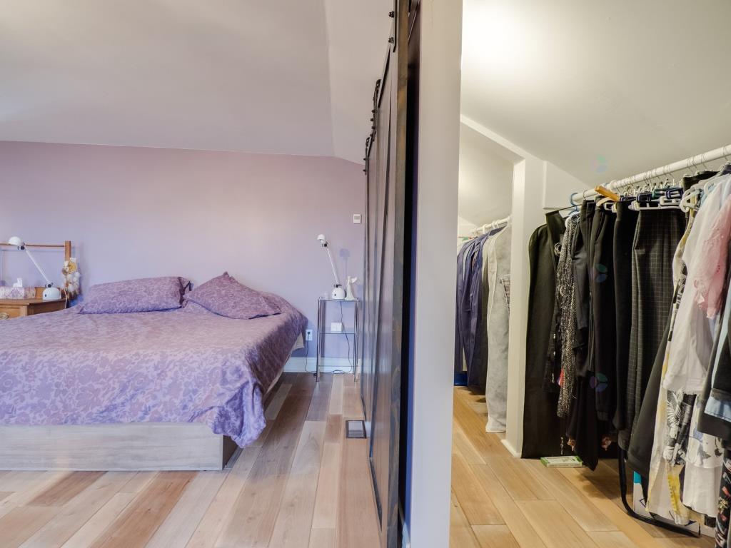 La chambre principale, généreusement dimensionnée, offre de nombreuses possibilités d’aménagement selon vos besoins. Le grand garde-robe permet d’organiser vêtements, chaussures et accessoires de manière optimale, offrant un espace pratique et fonctionnel.