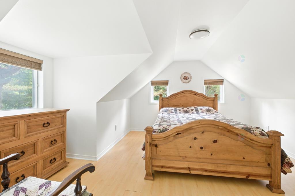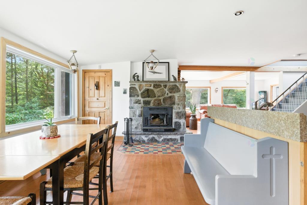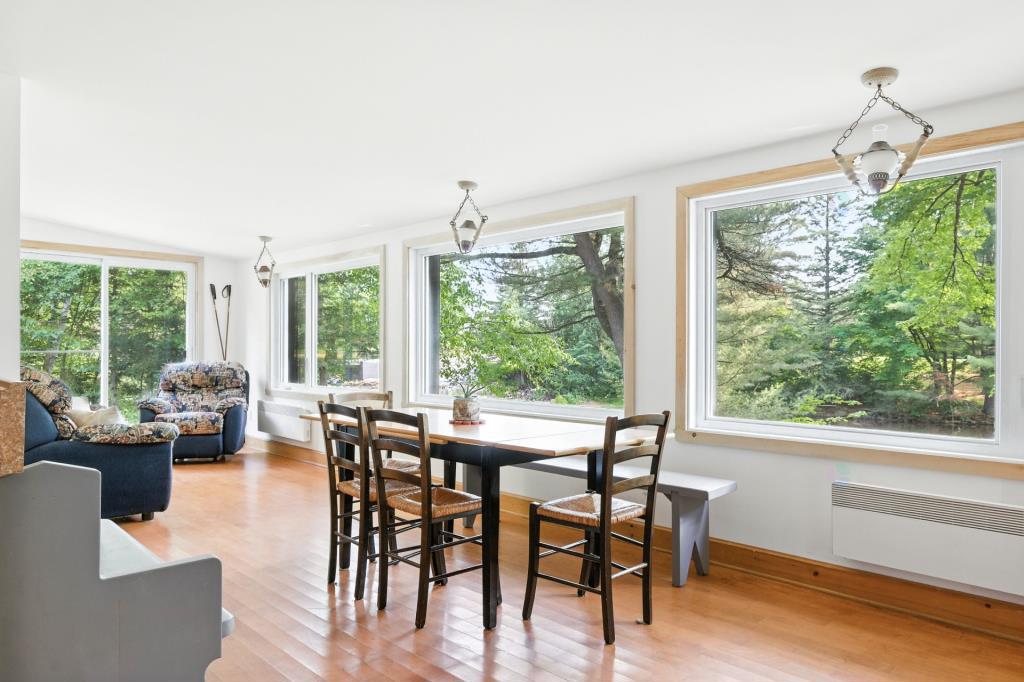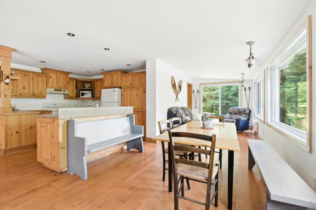 Dès l’entrée dans la maison principale, on est immédiatement séduit par la luminosité et l’harmonie des espaces. L’aire ouverte offre une vue imprenable sur la rivière, invitant à la détente et à la contemplation. La cuisine, véritable cœur de la maison, s’ouvre sur la salle à manger et bénéficie de larges fenêtres qui inondent l’espace de lumière naturelle. Fonctionnelle et chaleureuse, elle dispose de nombreux rangements et de vastes surfaces de travail, idéales pour préparer de délicieux repas dans une atmosphère conviviale. Que ce soit pour un dîner en famille ou un repas entre amis, cet espace permet de cuisiner tout en restant au contact de la vie de la maison.