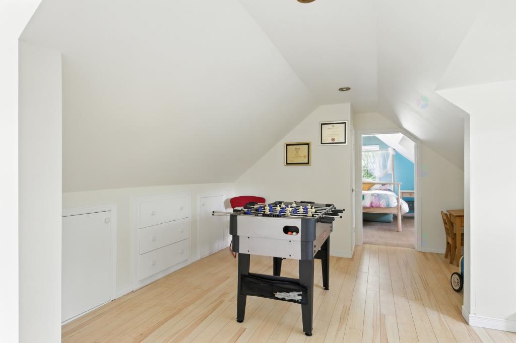 Au deuxième étage, deux chambres de bonne dimension et un espace de jeux offrent un environnement idéal pour les enfants. Ces pièces peuvent également être transformées selon vos besoins : bureau, salle d’entraînement, atelier créatif ou chambre supplémentaire, laissant libre cours à toutes les possibilités d’aménagement. L’espace y est généreux, et la luminosité naturelle contribue à créer une ambiance agréable et fonctionnelle.