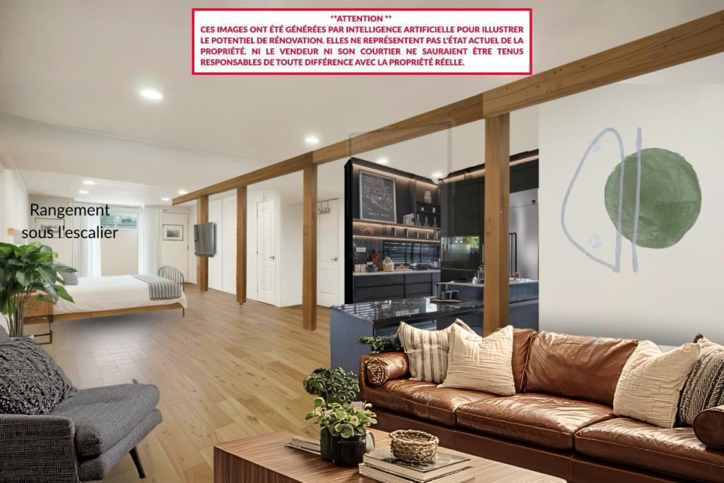 Voici un montage réalisé par l’intelligence artificielle pour illustrer le potentiel de rénovation du sous-sol.