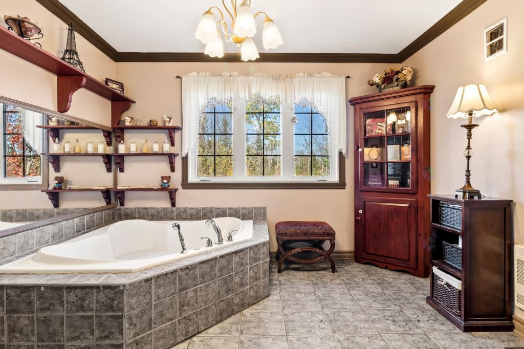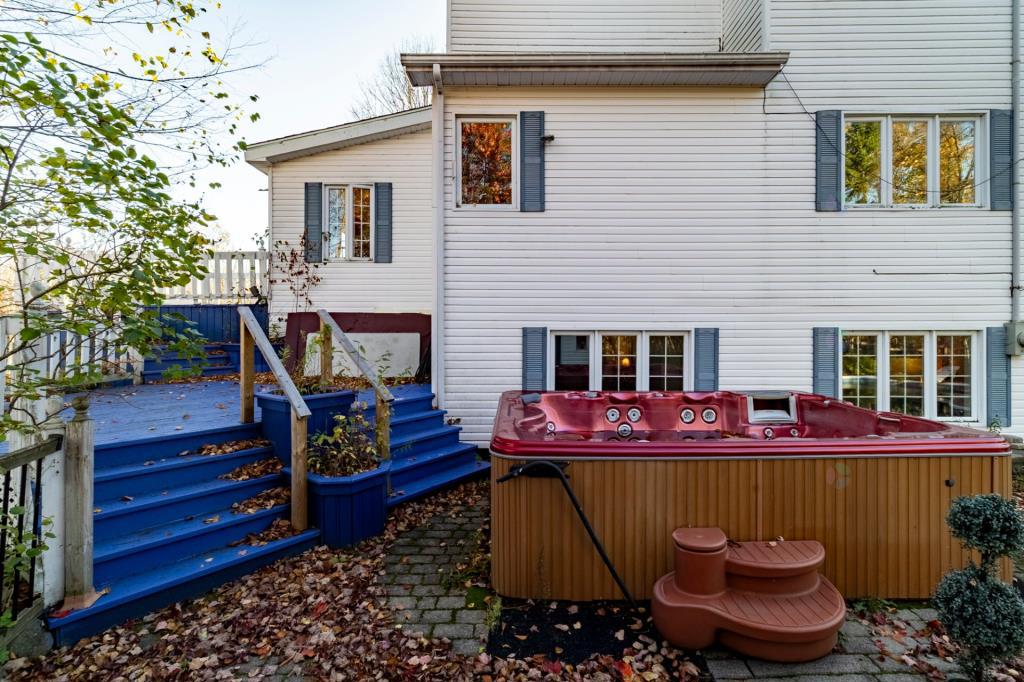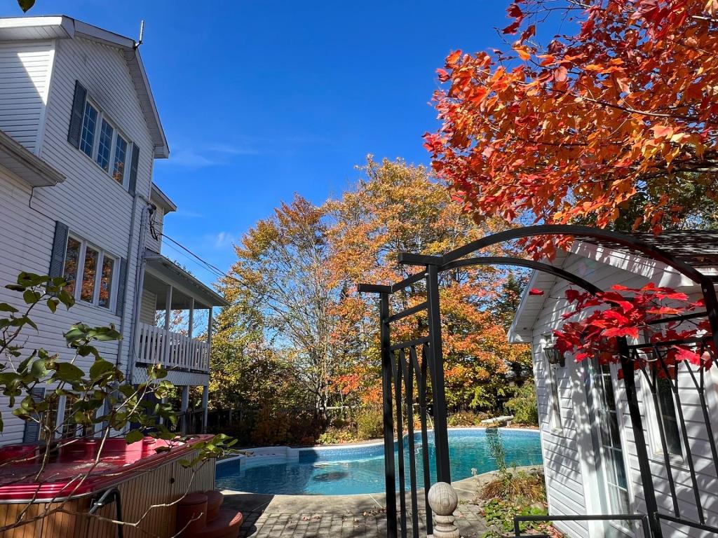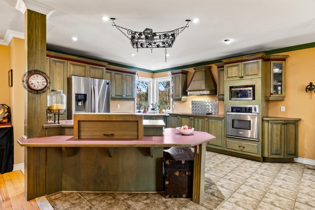 Le rez-de-jardin, quant à lui, offre un logement complet idéal pour recevoir famille ou amis. Une grande salle familiale avec foyer, une cuisine, une salle à manger et deux chambres à coucher composent cet espace indépendant. Cet aménagement permet à chacun de profiter de son intimité sans se sentir isolé. Les invités y seront immédiatement à l’aise, profitant de tout le confort nécessaire pour prolonger leur séjour dans ce décor de rêve.