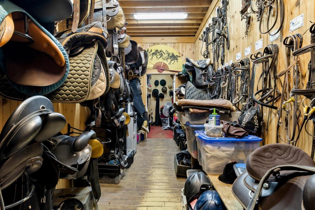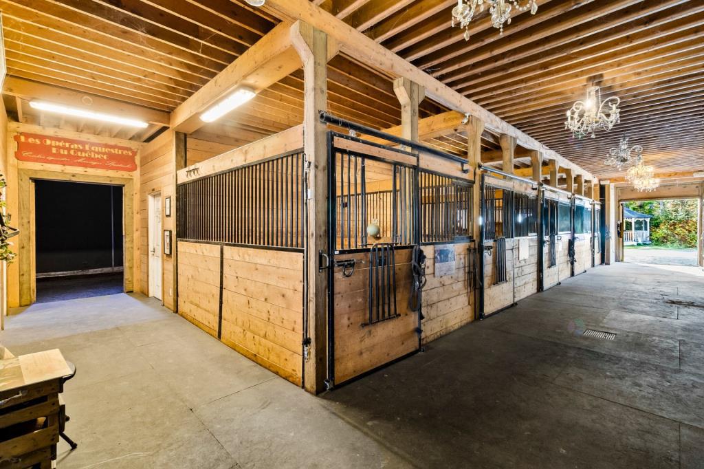 Les installations équestres du domaine sont dignes des plus grandes propriétés spécialisées. Deux écuries totalisant vingt-quatre boxes chauffés offrent tout le confort nécessaire aux chevaux. On y trouve une sellerie, des espaces de rangement pouvant accueillir plus de deux cents balles de foin, et même un dortoir pour le personnel à l’étage. Tout a été conçu pour faciliter le travail quotidien et garantir le bien-être des animaux.