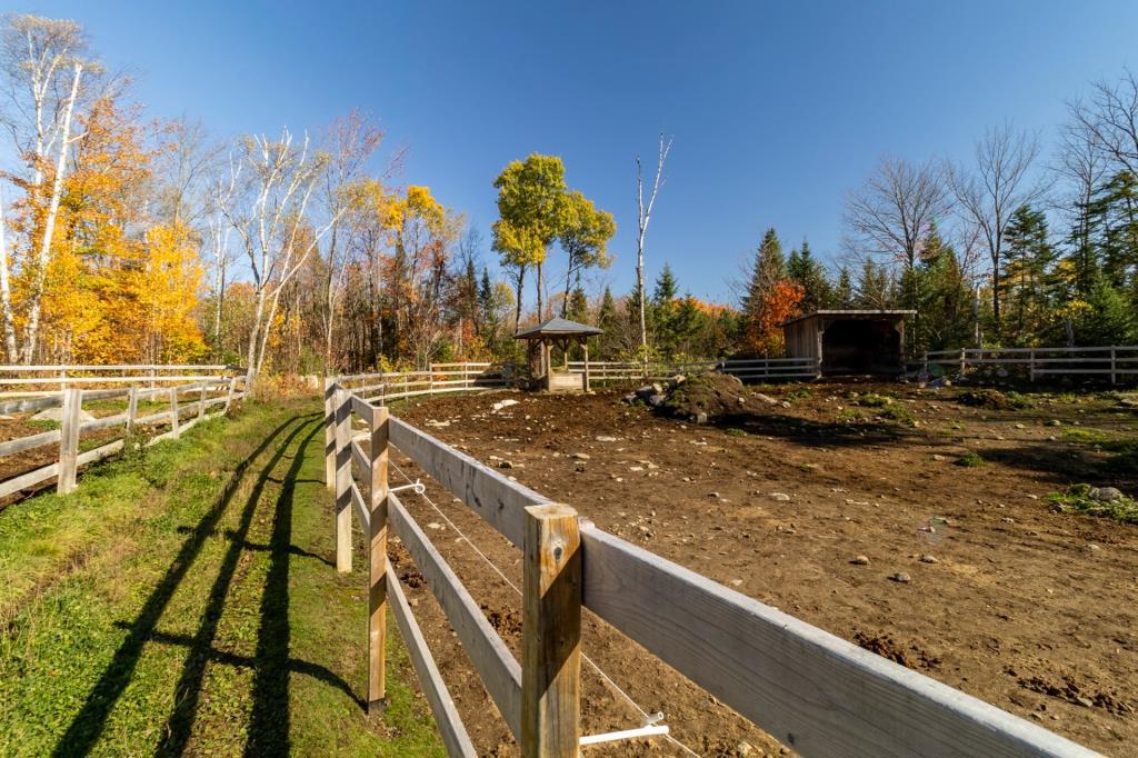 Cinq paddocks spacieux, chacun doté d’abris et d’abreuvoirs chauffants, permettent aux chevaux de profiter du plein air dans des conditions idéales. Un round pen électrifié de plus de six pieds de hauteur, parfait pour les étalons, ainsi qu’un pâturage de trèfle complètent ces aménagements. Même un poulailler sur dalle de béton a été ajouté, témoignant du souci du détail et de la polyvalence de cette propriété hors du commun.