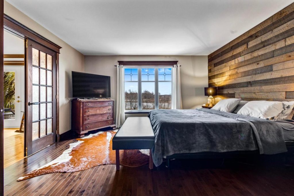 Le même étage accueille également deux chambres supplémentaires, idéales pour des enfants, des invités ou pour repenser la vocation des pièces selon les besoins de chacun. Bureau professionnel, atelier créatif, salle d’entraînement ou espace de jeux : tout est possible. Une autre salle de bain à cet étage facilite la vie de famille et assure un confort optimal pour tous. On retrouve aussi un grand balcon avec une vue imprenable sur le fleuve.