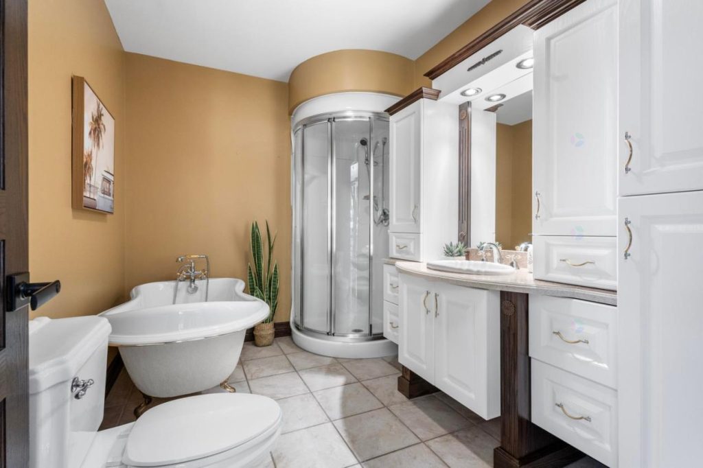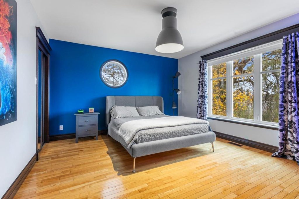 À l’étage, la suite principale se présente comme un espace de tranquillité. Sa superficie généreuse et son ambiance apaisante en font un lieu privilégié où l’on peut se retirer en toute sérénité. Le grand walk-in permet d’organiser facilement vêtements, chaussures et accessoires, ajoutant un confort supplémentaire au quotidien. La salle de bain attenante, soigneusement aménagée, invite à la détente grâce à son bain parfait pour relaxer après une journée bien remplie. Tout dans cette suite contribue à instaurer une atmosphère douce, intime et reposante.