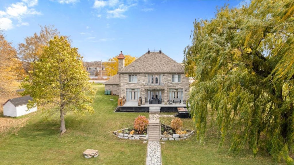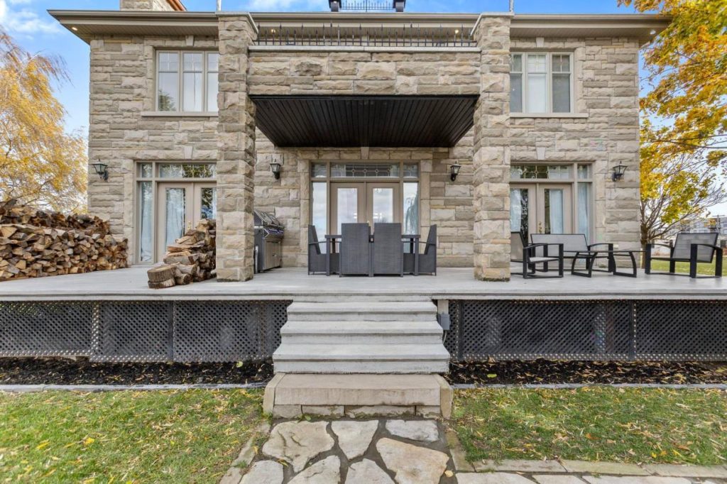 Cette spectaculaire maison en pierre située à Salaberry-de-Valleyfield s’impose comme une résidence d’exception où l’architecture, le confort et la nature cohabitent en parfaite harmonie. Érigée sur un immense terrain de plus de 52 000 pieds carrés, elle profite d’un emplacement rare bordé par les eaux calmes du fleuve Saint-Laurent, dans une zone non inondable. Dès l’arrivée, on perçoit immédiatement l’équilibre entre prestige et tranquillité : un lieu où la beauté du paysage se mêle à la sophistication d’une demeure conçue avec des matériaux de grande qualité. Proche de toutes les commodités essentielles, tout en étant entourée de nature, cette maison offre un mode de vie unique, alliant proximité urbaine et intimité absolue.