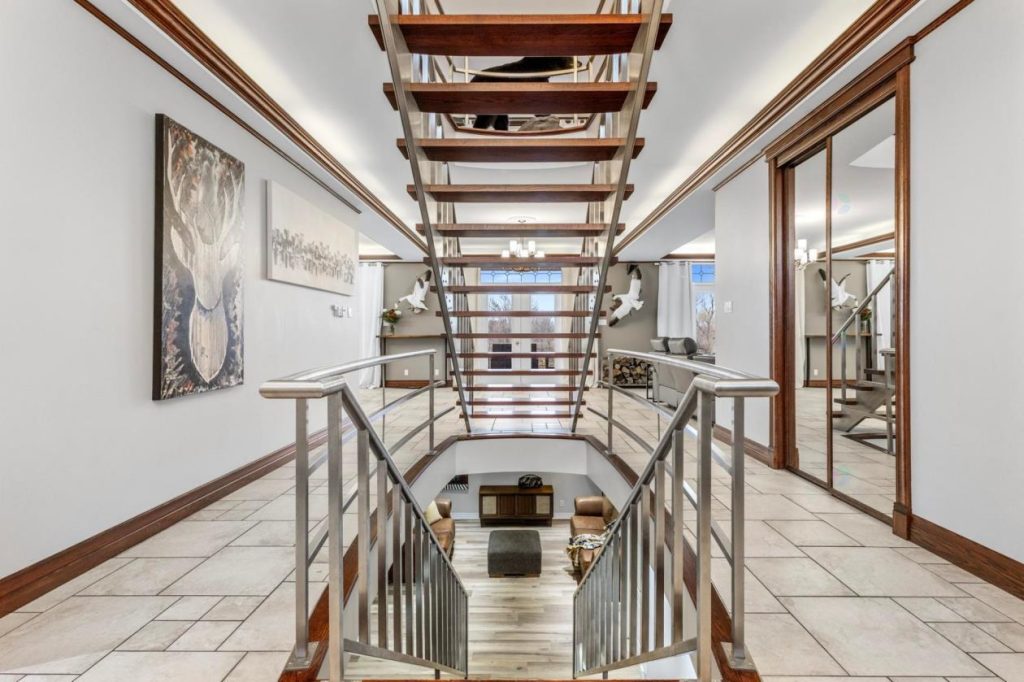 En franchissant le seuil, on découvre un intérieur d’une élégance incontestable. Le hall d’entrée dévoile un majestueux escalier central qui s’élève sur trois étages, devenant rapidement la pièce maîtresse de la maison. Sa présence impose un caractère noble à l’ensemble et annonce immédiatement l’attention portée aux détails. Les finitions haut de gamme, la qualité des matériaux et la grande cohérence esthétique témoignent d’un sens du design incontestable.