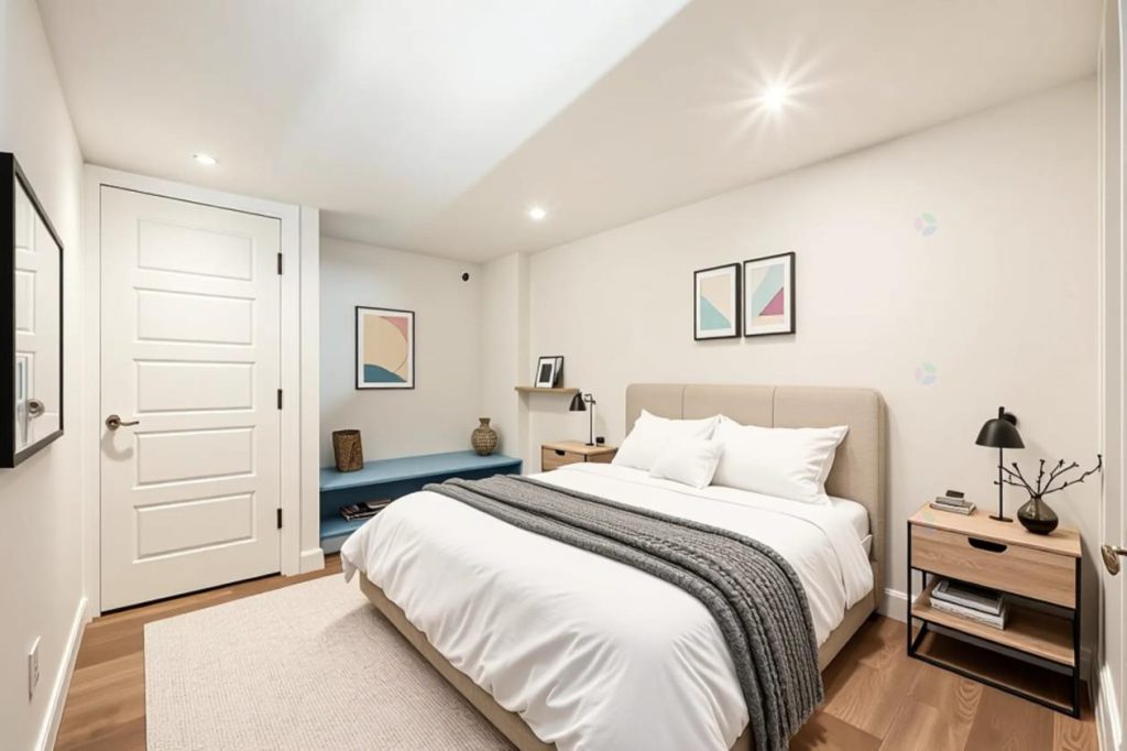 Le sous-sol, entièrement aménagé, prolonge l’espace de vie de manière remarquable. On y trouve une vaste salle familiale, idéale pour les soirées télé, les moments en famille ou les rassemblements entre amis. Une chambre supplémentaire peut accueillir un adolescent en quête d’indépendance ou recevoir des invités en tout confort. Les espaces de rangement, nombreux et bien pensés, offrent une solution pratique pour organiser le quotidien sans compromis sur l’esthétique.