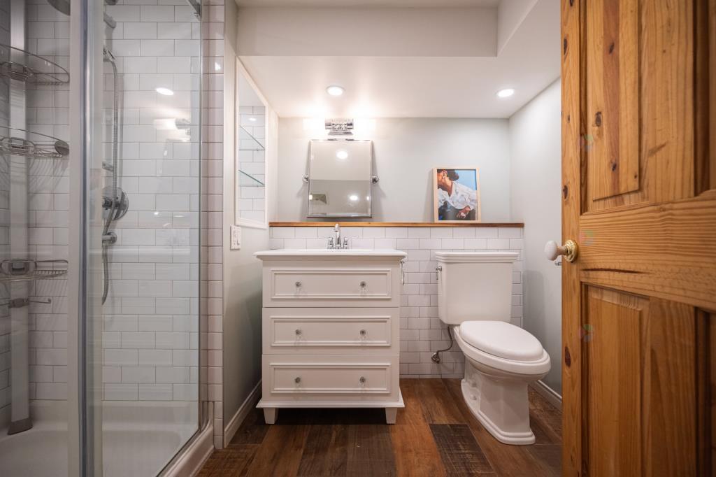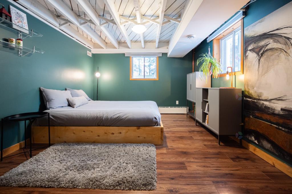 Le sous-sol, doté d’une hauteur de plafond de 7 pieds et de grandes fenêtres, offre un espace polyvalent et lumineux. Il comprend une salle familiale avec mur de brique, idéale pour un salon ou une salle de détente, une salle de bains avec douche indépendante, ainsi qu’une chambre de bonne dimension convenant parfaitement aux invités ou à un adolescent, avec un coin bureau. Une salle mécanique complète ce niveau avec espace de rangement, garde-robe en cèdre, évier et accès direct au garage.