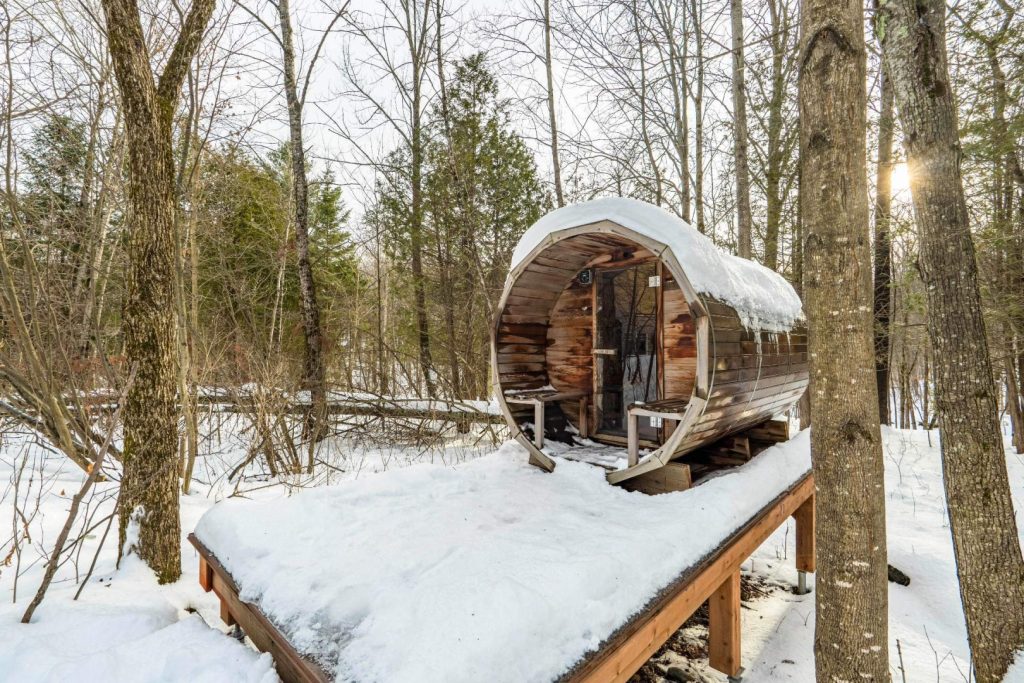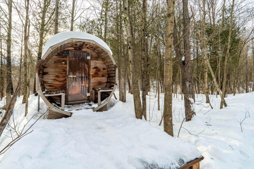 Parmi les atouts notables de la propriété, l’accès au sauna commun situé aux abords de la Rivière aux Cerises se démarque particulièrement. Cet espace de détente, niché en pleine nature, offre une expérience unique où bien-être et tranquillité se rencontrent. Les résidents bénéficient également d’un atelier commun entièrement équipé, pratique pour les projets manuels ou l’entretien. Le condo inclut un stationnement ainsi qu’un rangement privé, ajoutant au confort et à la praticité du quotidien.