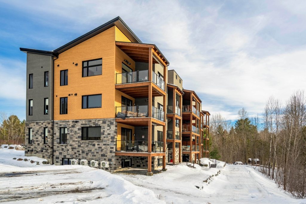 Ce magnifique condo, présentement en vente, bénéficie d’un emplacement privilégié à seulement cinq minutes du Parc national du Mont-Orford, des pistes de ski, des terrains de golf et du centre-ville de Magog. Construit en 2022, il se distingue par une architecture moderne et soignée qui s’intègre parfaitement à son environnement naturel. Dès le premier regard, on comprend que cette propriété a été pensée pour offrir un équilibre harmonieux entre raffinement, confort et fonctionnalité.