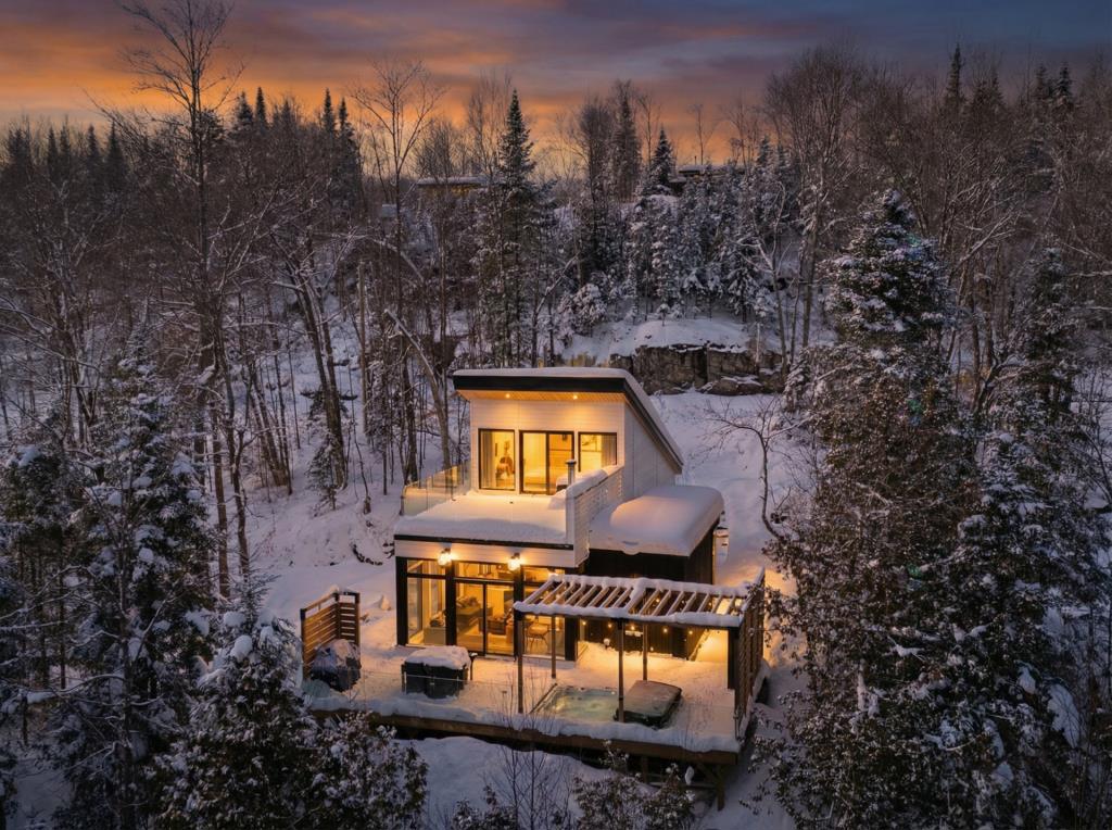 Superbe chalet moderne construit en 2022, perché en montagne et offrant une vue panoramique à couper le souffle, cette propriété située à La Conception se distingue par son emplacement exceptionnel, à seulement 15 minutes de Mont-Tremblant, au cœur du projet recherché Chick Shack. La location à court terme y est permise, ce qui en fait une occasion clé en main aussi intéressante pour un investisseur que pour un pied-à-terre en nature. Le chalet propose deux terrasses, dont une spectaculaire terrasse sur le toit offrant une vue directe sur le Mont-Tremblant, un véritable privilège pour profiter du paysage en toute saison.
