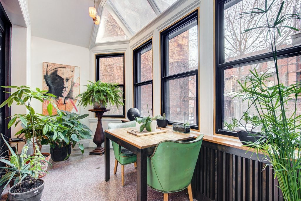 Un solarium s’ajoute aux espaces de vie et propose une pièce lumineuse et apaisante donnant sur la cour arrière. C’est l’endroit idéal pour lire, jouer à un jeu de société ou simplement profiter de la lumière naturelle au fil des saisons. Cet espace polyvalent représente un atout précieux, offrant un contact privilégié avec l’extérieur dans un cadre intime.