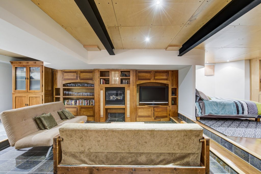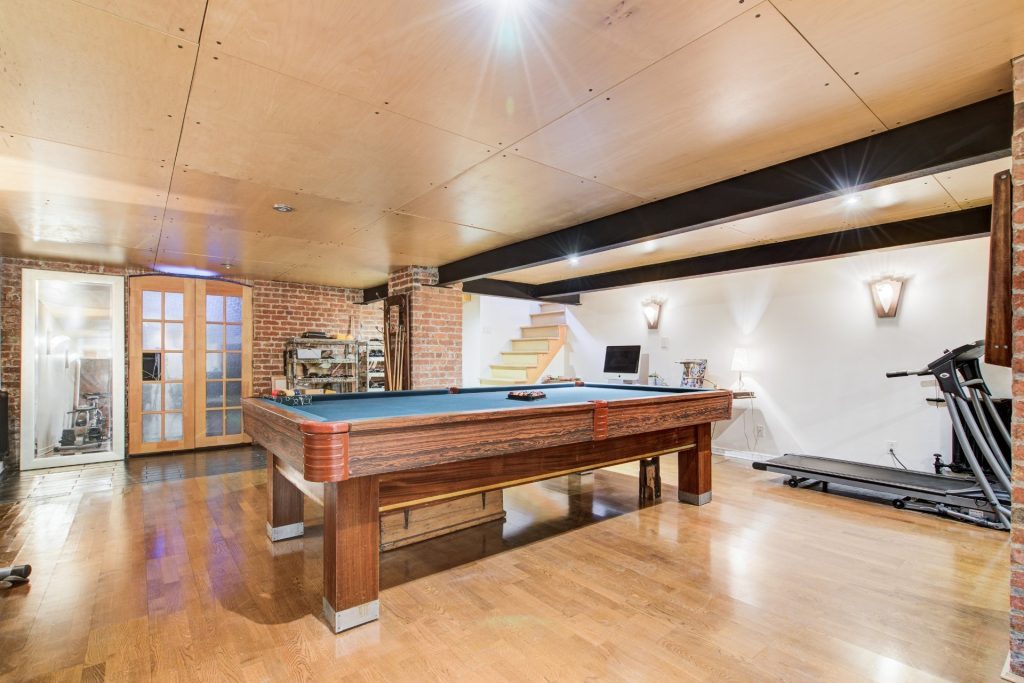 Au sous-sol, une immense salle familiale et salle de jeux s’étend sur une superficie impressionnante. On peut y installer une table de billard, aménager une zone d’entraînement ou créer un espace télévision distinct. Cet étage polyvalent s’adapte aux loisirs et aux activités de tous les membres de la famille. On y retrouve également une chambre à coucher ouverte ainsi qu’une troisième salle de bain dotée d’une douche séparée, ajoutant à la fonctionnalité de l’ensemble.