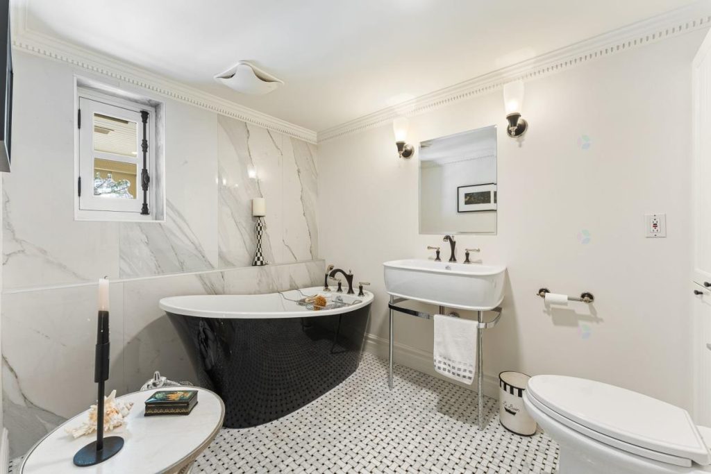 La salle de bains comprend une baignoire autoportante ainsi que des finitions soignées qui rehaussent l’ensemble. Que ce soit pour commencer la journée dans le calme ou pour la terminer par un bain relaxant, cet espace répond parfaitement aux besoins de bien-être. L’aménagement est fait avec goût, alliant esthétique et fonctionnalité.