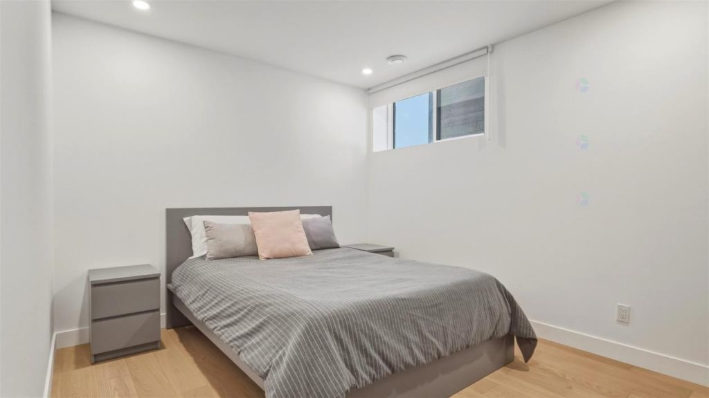Le sous-sol dévoile une vaste salle familiale aux multiples possibilités. Cet espace polyvalent peut facilement accueillir un second salon, une zone d’entraînement ou encore un espace bureau selon les besoins. Deux chambres supplémentaires, de belles dimensions, y sont également aménagées, idéales pour recevoir des invités ou pour répondre aux besoins d’une famille grandissante. On y trouve aussi une salle de lavage fonctionnelle avec cabinets de rangement et évier, ainsi qu’une salle de bains dotée d’une douche en céramique, ajoutant encore davantage de commodité.