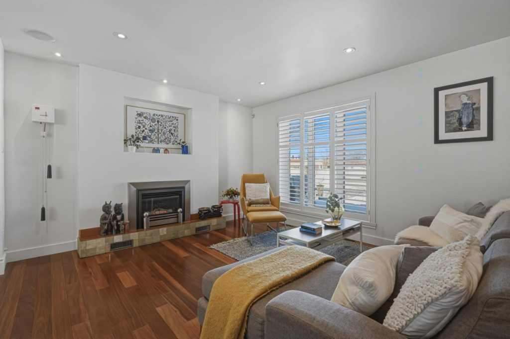 Le salon, chaleureux et invitant, est agrémenté d’un foyer au gaz qui en devient le point central. Il s’agit d’un espace propice à la détente, à la lecture ou aux échanges en toute tranquillité. On y ressent une atmosphère enveloppante, idéale pour ralentir le rythme et profiter pleinement du moment présent, seul ou en bonne compagnie.