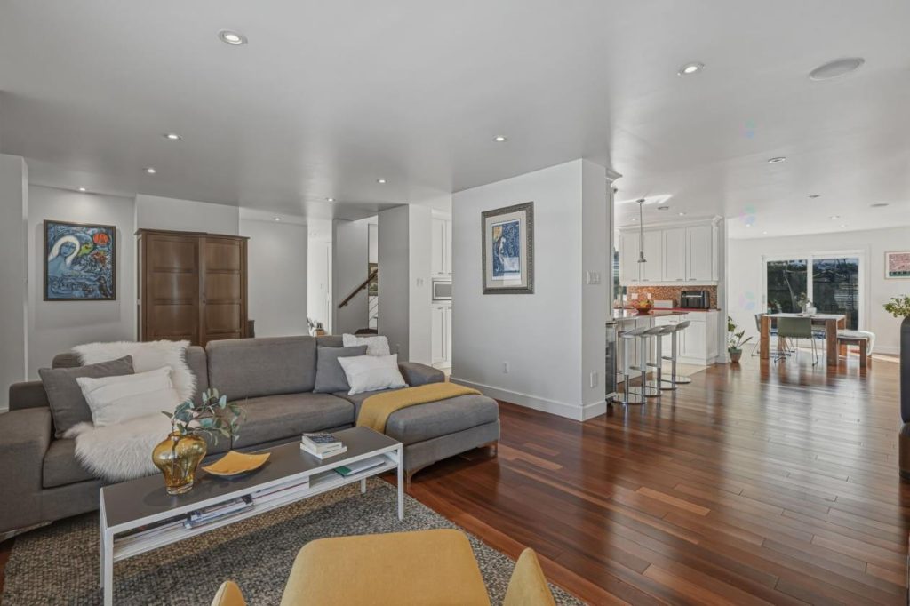 Le cœur de la maison s’ouvre sur une impressionnante aire de vie de plus de 700 pieds carrés. Cet espace rassemble le salon, la salle à manger et la cuisine dans une continuité fluide, créant un environnement idéal pour la vie quotidienne autant que pour les réceptions. L’atmosphère y est conviviale et chaleureuse, permettant aux occupants de profiter pleinement de chaque moment, que ce soit en famille ou entourés d’amis.