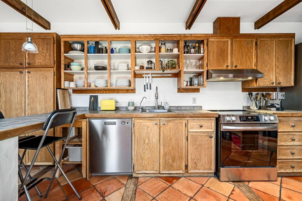 La cuisine, entièrement rénovée, séduit par son esthétique soignée et sa fonctionnalité. Baignée de lumière, elle propose un aménagement réfléchi où chaque élément trouve sa place. Les nombreux espaces de rangement facilitent l’organisation du quotidien, tandis que les surfaces de travail généreuses permettent de cuisiner avec aisance. Un coin repas y a également été intégré, parfait pour savourer un café, partager un déjeuner rapide ou simplement prolonger les discussions dans une ambiance conviviale et décontractée.
