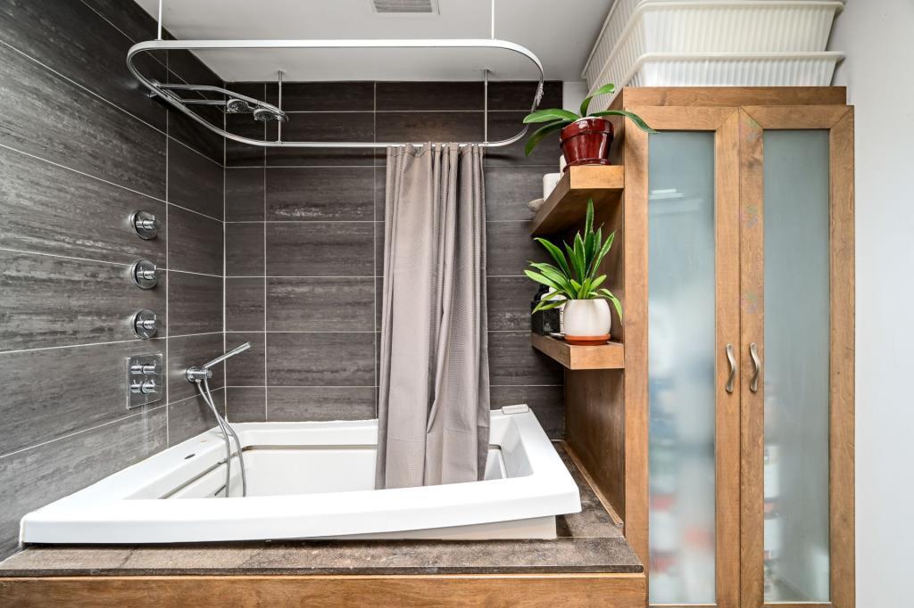 Le condo dispose également de deux balcons, situés à l’avant et à l’arrière, ce dernier étant accessible par la cuisine. Ces espaces extérieurs permettent de profiter pleinement des belles journées et de la saison estivale, que ce soit pour prendre l’air, cultiver quelques plantes ou simplement se détendre au soleil. À cela s’ajoute un vaste espace de rangement privé de plus de 300 pieds carrés au sous-sol chauffé, un atout particulièrement rare qui offre une solution pratique pour entreposer équipements et effets personnels.