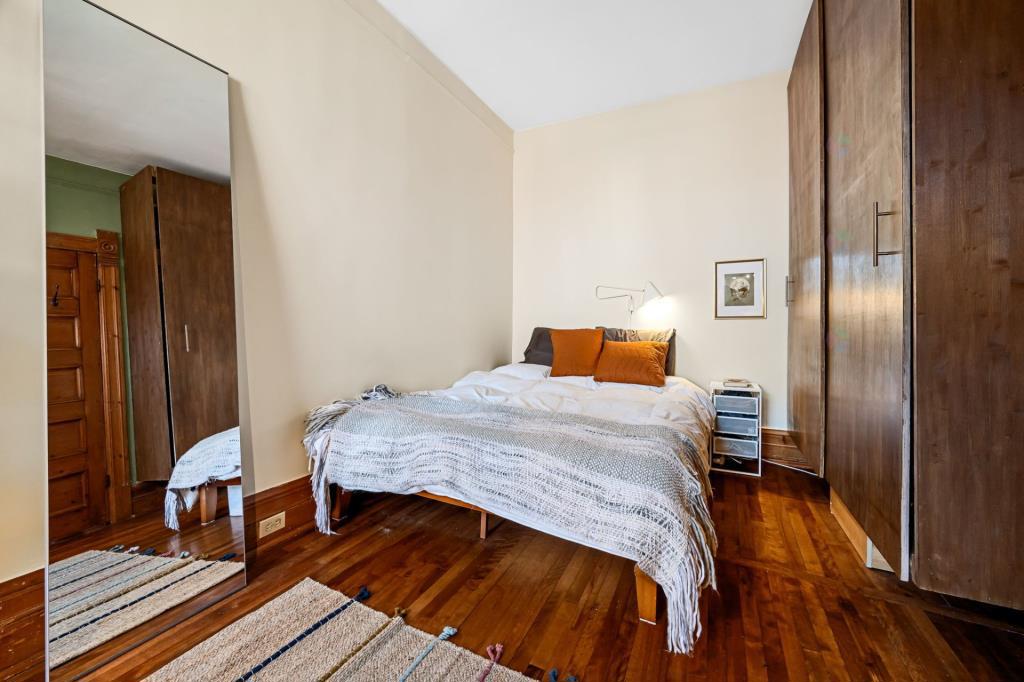 La deuxième chambre à coucher, de belles dimensions, offre elle aussi une grande flexibilité d’aménagement. Elle peut accueillir confortablement un lit tout en laissant place à un coin bureau ou à un espace de lecture. Que ce soit pour un enfant, un invité ou un usage mixte, cette pièce s’adapte aisément aux différents modes de vie, tout en conservant une atmosphère agréable et lumineuse.
