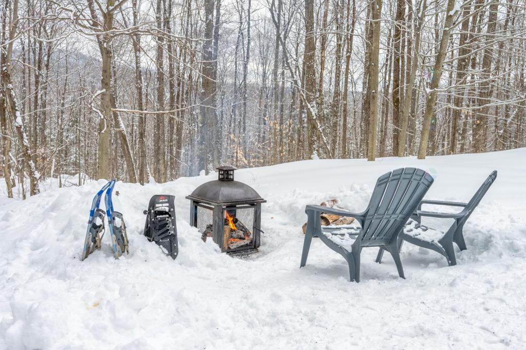 À l’extérieur, le terrain se transforme en un véritable terrain d’exploration. Les amateurs de nature apprécieront la possibilité d’y aménager un espace pour les feux de camp, idéal pour prolonger les soirées sous les étoiles. Une remise ainsi qu’un atelier permettent de concrétiser divers projets, qu’ils soient créatifs ou utilitaires.