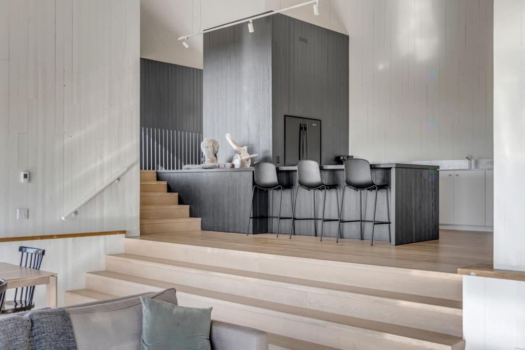 Le salon, quant à lui, offre un véritable coin de détente. Confortable et soigneusement aménagé, il invite à ralentir le rythme et à profiter du moment présent. Que ce soit pour contempler le paysage, se plonger dans un bon livre ou simplement se laisser bercer par la quiétude ambiante, chaque instant y prend une dimension particulière. Le design, à la fois sobre et raffiné, renforce cette impression de bien-être.