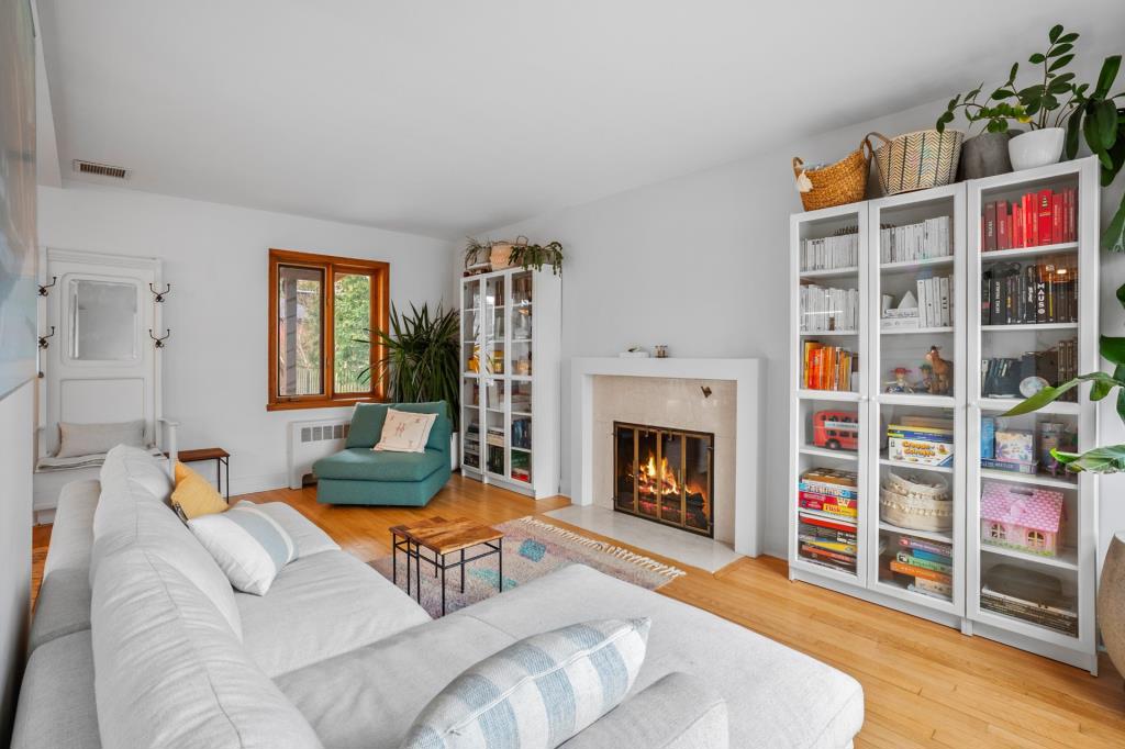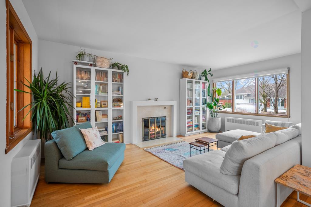 À quelques pas, le salon propose un environnement parfait pour se détendre. Que ce soit pour lire, échanger avec des invités ou simplement profiter d’un moment de calme, cette pièce répond à tous les besoins. Le foyer apporte une touche chaleureuse et réconfortante, particulièrement appréciée lors des journées plus fraîches. La luminosité naturelle permet également d’y intégrer des plantes, ajoutant une note de verdure et de fraîcheur à l’espace.