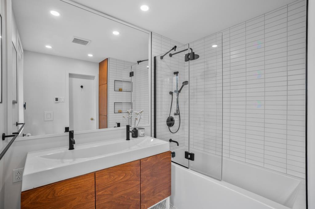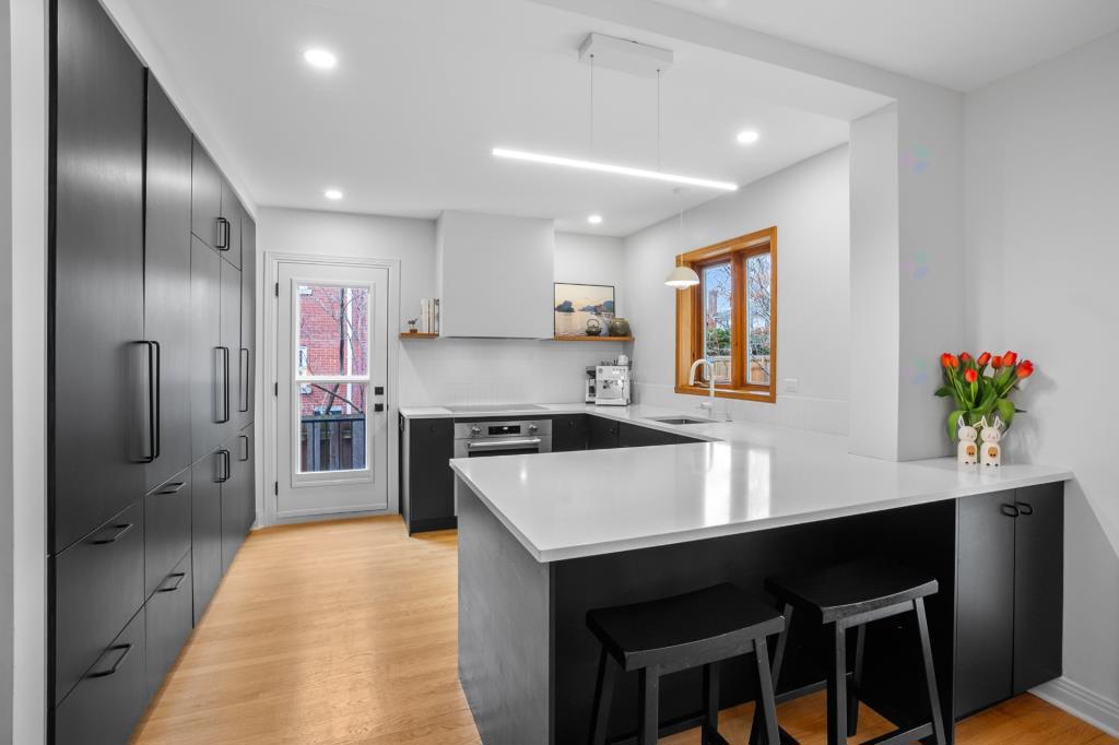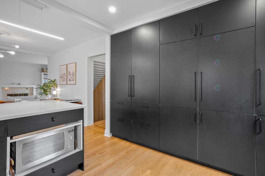 La cuisine, moderne et épurée, est un véritable coup de cœur pour les amateurs de gastronomie. Baignée de lumière naturelle, elle propose une ambiance inspirante pour cuisiner au quotidien. Son coin lunch, convivial et pratique, est parfait pour les repas rapides ou les moments de discussion informels. L’abondance de rangement et les multiples surfaces de travail permettent d’optimiser l’espace et de cuisiner avec aisance, que ce soit pour des repas simples ou des créations plus élaborées.
