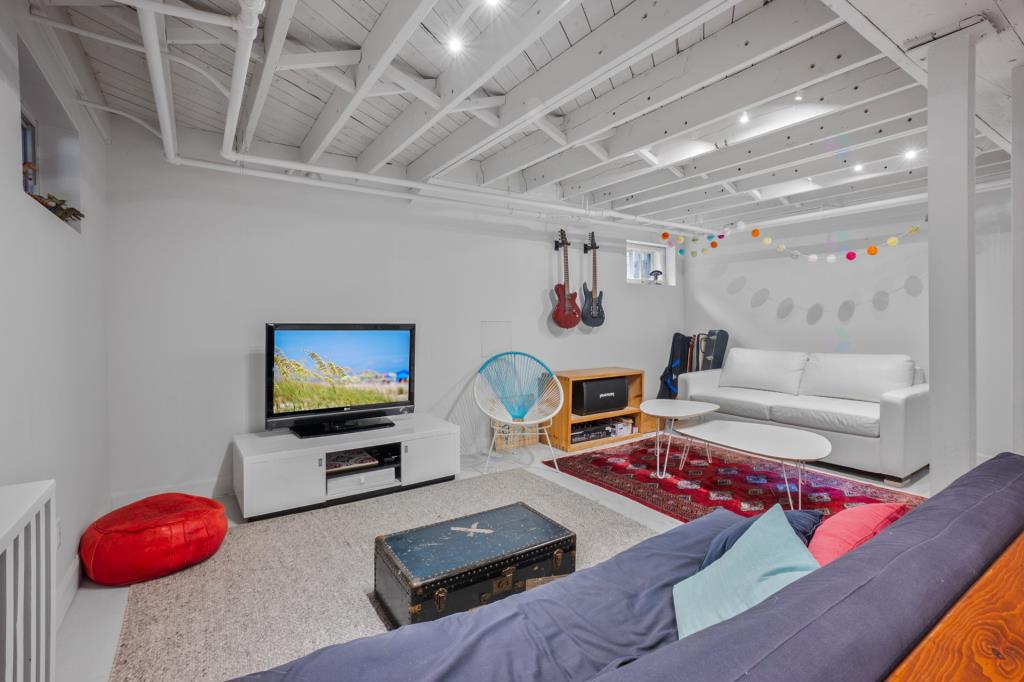 Le sous-sol abrite une vaste salle familiale qui peut être aménagée selon les envies. Que ce soit pour un second salon, un espace musical ou une zone de jeux, les possibilités sont nombreuses. Cet espace polyvalent permet aux futurs propriétaires de laisser libre cours à leur imagination afin de créer un environnement qui correspond parfaitement à leur mode de vie.