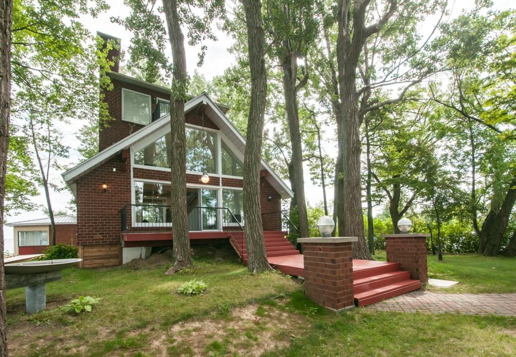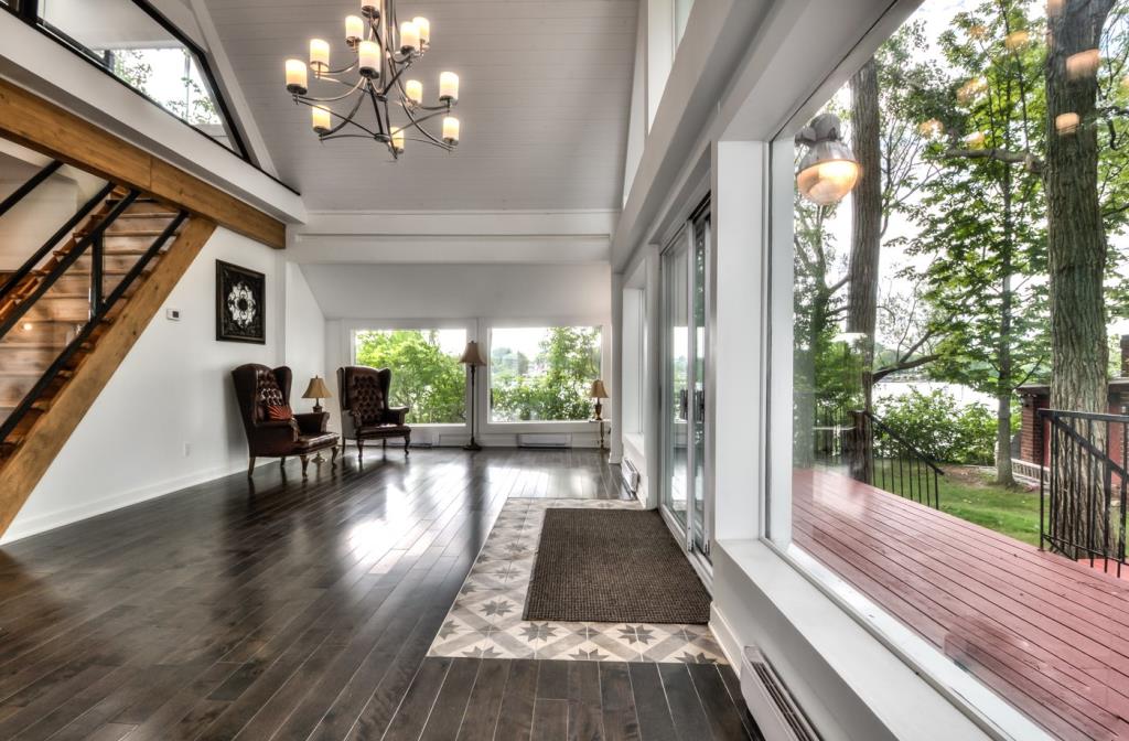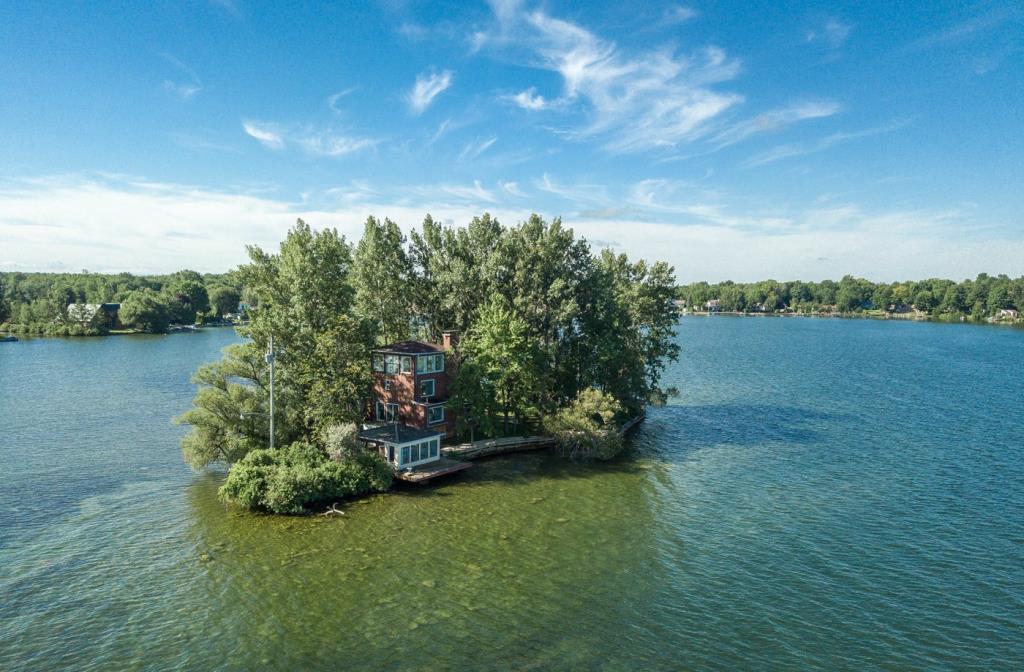Cette splendide maison située sur l’Île Buteau dans la ville de Sainte-Barbe en Montérégie est présentement disponible sur le marché. Elle comporte 2 chambres à coucher, 2 salles de bain et une salle d’eau. Elle est construite sur une île privée de 18 498 pc à moins de 5 minutes de la terre ferme sur le Lac Saint-François (faisant partie de la voie maritime du Saint-Laurent). On aime beaucoup sa généreuse fenestration qui permet d’apprécier pleinement ce paysage unique ainsi que les magnifiques couchers de soleil insulaires. Une résidence secondaire se trouve aussi sur l’île pour recevoir vos invités.
